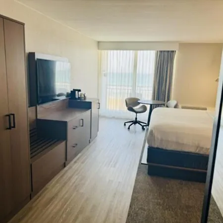 Holiday Inn Hotel & Suites Daytona Beach On The Ocean offers modern accommodations with stunning views of the Atlantic Ocean. Guests enjoy direct beach access and can relax by the spacious outdoor pool. Each room comes equipped with a refrigerator and microwave, while nearby dining options are great for enjoying fresh seafood. Located just 1 km from Daytona Beach Boardwalk, the hotel's proximity to local attractions enhances the overall experience. Families will appreciate the inclusive amenities of this well-appointed hotel.